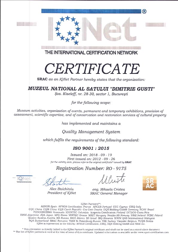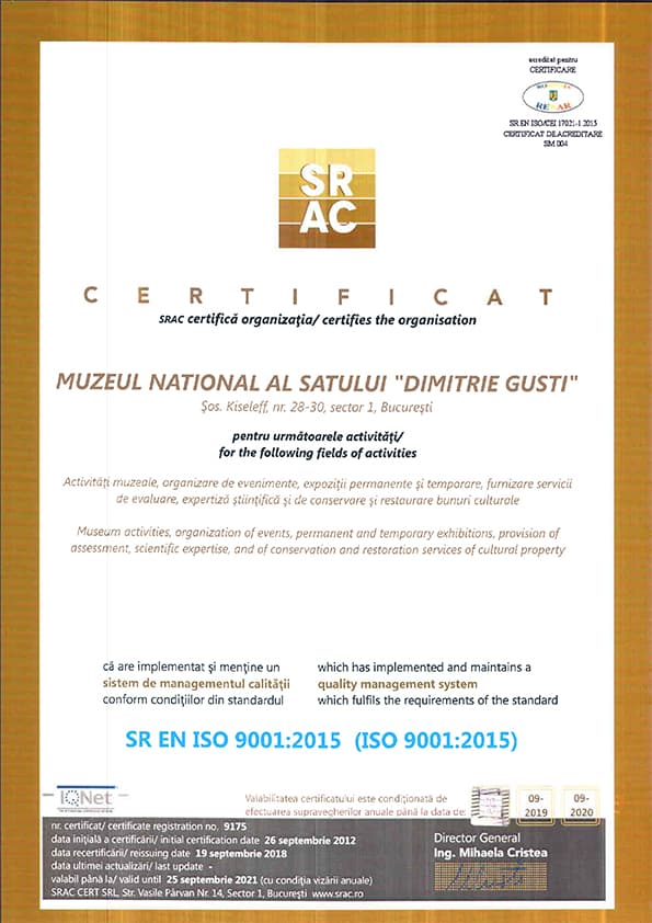 Diverse certificări obținute de Muzeul Național al Satului „Dimitrie Gusti" pentru calitate, accesibilitate și excelență în management cultural.